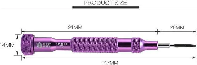 Material: S2 steel Size: 110*147*22mm Weight: 222g Precision Screwdriver for iPhone,iPad,Notebook,Computer and other device. Screwdriver handle is made of Aluminium alloy,the middle of the handle has increases the friction,make sure will Non slip when you're working. Magnetic Screw Bits are made of CR-V material,Non-rust and Durable,increase the effective. Screw bits type including Slotted,Torx,Phillps,Pentalobe. Equipped with a carry box,lightweight and portable,easy to store.