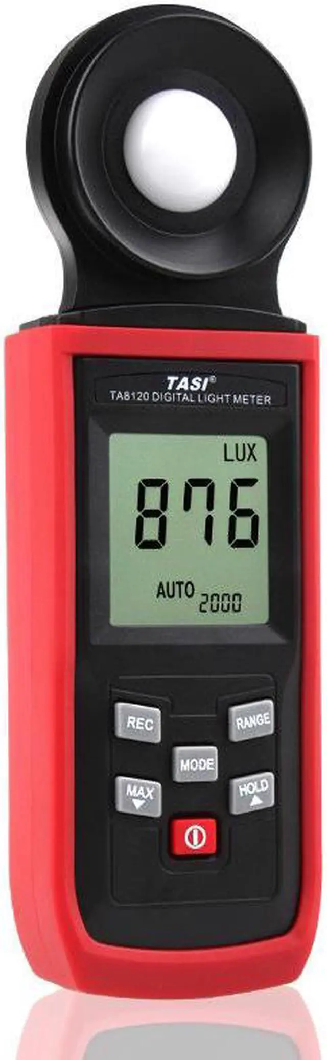 Item:Digital lux meter Model:TA8120 Brand:TASI Measuring level:2000Lux,20000Lux,100000Lux Resolution:1lux Accuracy:4%rdg10dgts(<10,000 Lux),5%rdg10dgts(>10.000 Lux).Color temperature 2856K Standard correction Sample Rate: 2times/S Repeatability:2% Data Record:can hold 50 measuring data(Time-delay record function) Spectral Response:meet CIE Photopic photoreceptor:Photodiode attached filter Unit Selection:lux/Fc Data Hold Function:Yes Max/MIN:Yes LCD display: Max Display 1999(4 number LCD display) LCD size:35*32MM Battery:2*AAA Color:Black+Red Product size:185*55*30MM Product Net Weight:150g Packet Content: 1 x Digital lux meter 1 x Protection bag 1 x Instruction English Manual