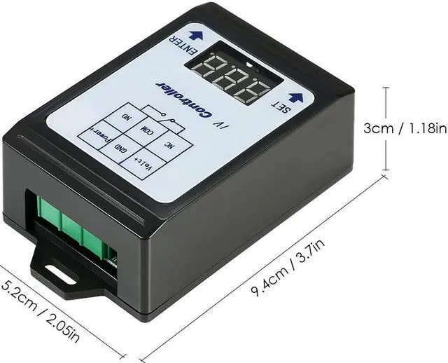 Specifications:Material: PCB + ABSWorking Voltage: DC 6~80VVoltage Detection Range: DC 0~99.9V Error: +/-0.1VWorking Current: 8mA/24V(relay open, LED displays OFF about 4mA/24V); 58mA/24V(relay closed)A set of transformations(normally open/normally close, NO/NC)Contact Load: NO: 30A/250V AC or 30A/30V DC; NC :20A/250V AC or 20A/30V DCAttention: Because high voltage DC electric arc damages relay contact, so the electric load above DC60V load current is less than 10A.Contact Resistance: 100m(1A 6VDC)Mechanical Durability: 10 millions Electricity durability: >100,000 (20A~250VAC)Operating Temperature: -40~85CItem Size: 9.4 * 5.2 * 3cm / 3.7 * 2.05 * 1.18inPackage Size: 9.5 * 6 * 3cm / 3.74 * 2.36 * 1.18inPackage Weight: 85g / 3oz Features:Digital display DC voltage detection, control the relay output.DC 6~80V relay interface board with 2 buttons for easy operation.With clear LED display, convenient to check the value.Adjustable Voltage Detection Range: DC 0~99.9V.When the measured voltage is lower than the lower limit or higher than upper limit value, the relay works.Can be used for voltage detection switch, battery over/under voltage protector or discharge meter.Comes with a cover for protection.
