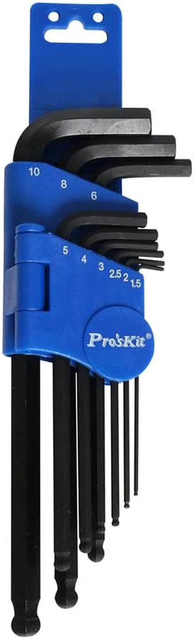 Proskit 8PK-028 9Pcs Ball-Point Hex Key Set (1.5,2,2.5,3,4,5,6,8,10mm) Key Wrench Set Hand Tools Brand Name: Proskit Type: Wrench Set Material: Carbon Steel is_customized: Yes Features: Multifunctional Model Number: 8PK-028 Item: Wrench Occasion: DIY/Repair Type: Hand Tool Function: Multifunctional