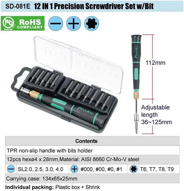 Pro'skit SD-081E 12 in 1 Precision Screwdriver Set of Mobile Phone/Notebook Maintenance Toolkit Tool Set Brand Name: ProskitType: Hand Tools,ScrewdriversNumber of Pieces: 12 piecesDIY Supplies: ElectricalApplication: Household Tool SetSize: see detailsModel Number: SD-081E