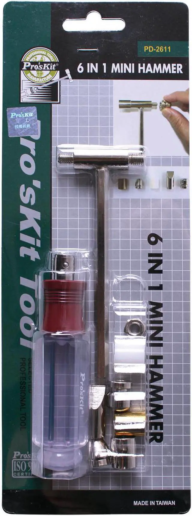 Pro'skit PD-2611 6 In 1 Mini Hammer Set Hand Tools Repair Hardware Tools Multifunctional Hammer Brand Name: ProskitHandle Material: FiberglassDIY Supplies: Electricalis_customized: YesModel Number: PD-2611Application: Machinist HammerHammer Head Material: SteelFeatures: MultifunctionalHammer Type: mini hammerHammer Material: Steel