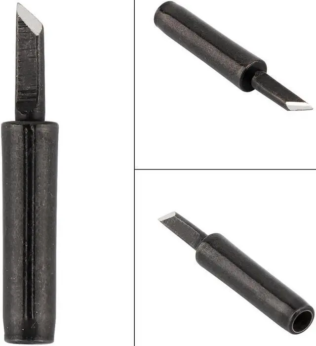900M-T-K Solder Tip Lead-free Black Metal Soldering Iron Tips for Hakko / 936 Soldering Rework Station Features: - Made of oxygen-free copper, it has rapid heat conduction. - Soldering smoothly, makes the welding spot evenly and rounded. - Lead-free welding, it is environmental-friendly and life extends 35%. - Multi-layer plating, with superior anti-corrosion and anti-oxidation.Color: BlackMaterial: Oxygen-free copper Inner Diameter: 4mm Outer Diameter: 6mm Application: - for Hakko / Atten / Quick and 936 / 937 soldering station. - for 900M/ 933 / 376 / 907 / 913 / 951 / 898D / 852D+ soldering iron. Package Weight : 6 G / 0.21 Ounces Package Dimensions (L*W*H) : 42*6*6 MM / 1.65*0.24*0.24 Inches Retail Packaging: No, No Packing