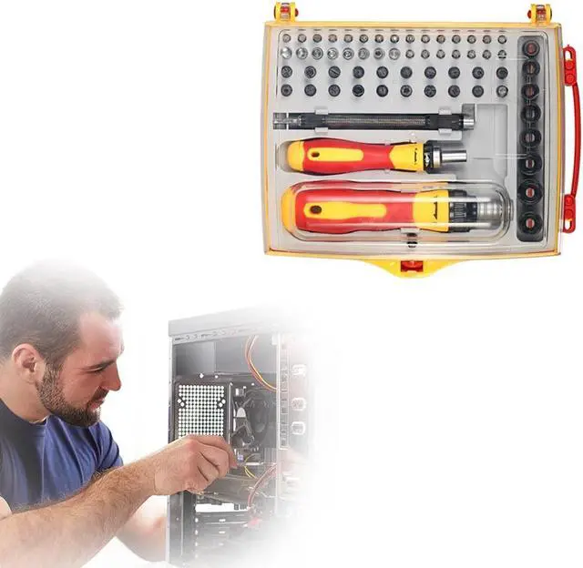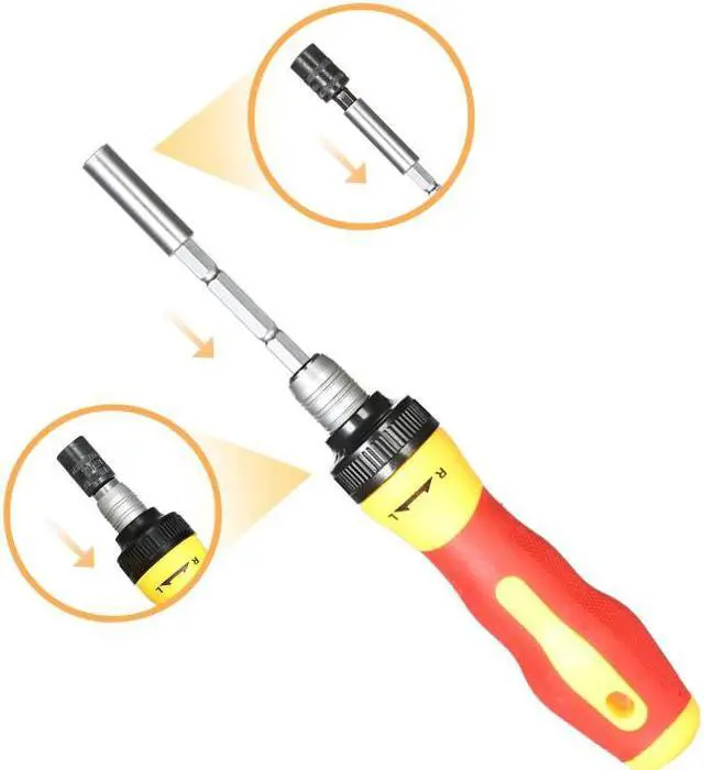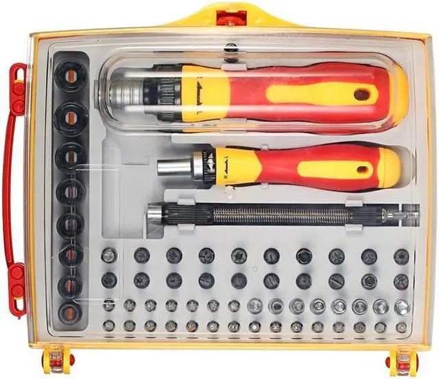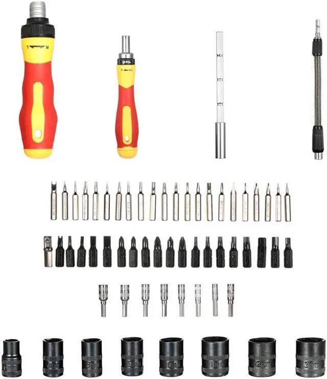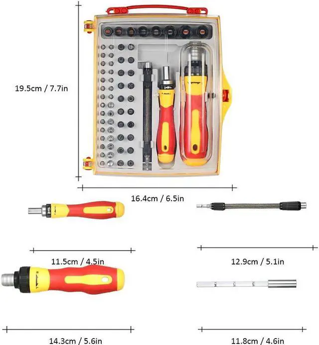 Specifications: Material: PP + Chrome-vanadium Steel Set Includes: --Phillips Bits: PH0, PH1, PH2; PH000, PH00, PH0, PH1 --Slotted Bits: 3, 5, 6; 1.0, 1.5, 2.0, 2.5, 3.0, 4.0 --Hex Bits: H4, H5, H6; 0.9, 1.5, 2.0 --Torx Bits: T10, T15, T20, T25, T30; T4, T5, T6, T7, T8, T10; 0.8, 1.2 --Y-shape Bits: 2, 3 --U-shape Bits: 6; 2.6 --Pozi Bit: Pz2 --Triangle Bit: 2.3 --Socket: 6mm,7mm,8mm,9mm,10mm,11mm,12mm,13mm; 2.0, 2.5, 3.0, 3.5, 4.0, 4.5, 5.0, 5.5 Bits Length: Approx. 2.4cm / 0.9in; 2.7cm / 1.1in Sockets Length: Approx. 2cm / 0.8in; 2.7cm / 1.1in Handle Length: Approx. 11.5cm / 4.5in; 14.3cm / 5.6in Extension Rods Length: Approx. 12.9cm / 5.1in; 11.8cm / 4.6in Case Size: Approx. 19.5 * 16.4 * 5cm / 7.7 * 6.5 * 2in Package Weight: Approx. 787g / 27.8oz Features: Includes 41pcs bits and 16pcs sockets to meet different electrical needs. Ergonomic handles for maximum comfort and exceptional torque. Includes two extension rods for easier use. Plug-pull tip design, easy to install and replace the bits, time-saving and efficient. Made of chrome-vanadium steel, hardened for maximum wear resistance. With a hanging ring, convenient to hang on the wall. Comes with a case, convenient for storage and portable for use. A must have for any handyman or electricians, great for use in most general electrical or household repairs.