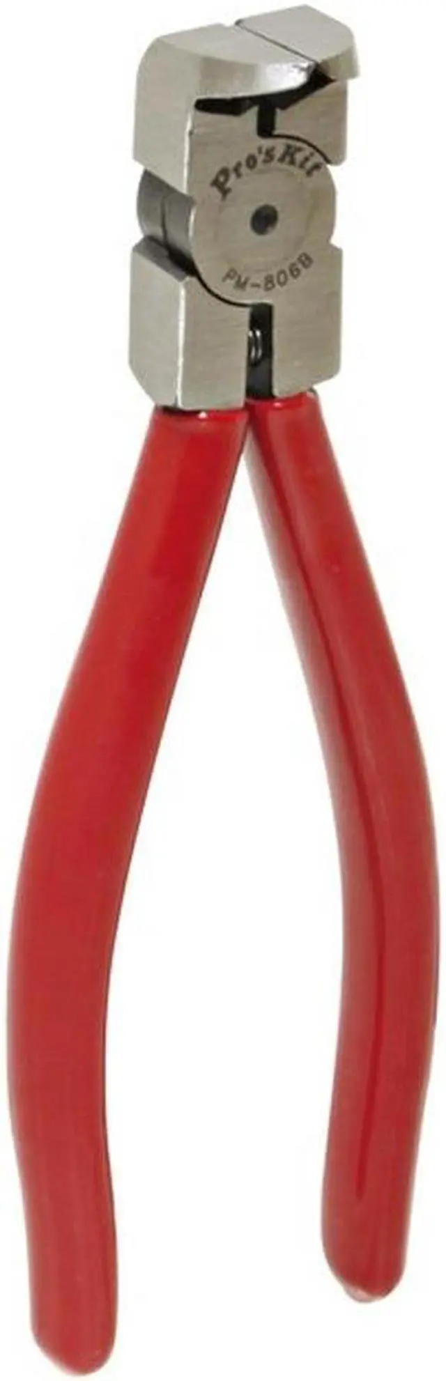 Pro'sKit PM-806B Plastic Nippers Pliers (150mm) 6'' Wire Cutters Repair Hand Tools Plier Made of high quality carbon steel with fine polished finish. Perfectly mated cutter, hardened and tempered of all cutting edges. Specific angle designed for flush cutting sprues off plastic components or soft materials such as lead. High quality PVC handle provides user comfort Wire spring for self-opening action to supply smooth operation Cutting capacity: Hard steel wire 0.8mm, copper wire 2.0mm
