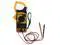 Small size multimeter can be used to measure resistance, AC, DC voltage, DC current, transistors, diodes. It has a low battery indicator. specification:LCD: 3 1/2 digitsMaximum reading: 1999DC voltage: 200mV / 2000mV / 20V / 200V / 1000VAC voltage: 200V / 750VDC current: 200uA / 2000uA / 20mA / 200mA / 10AResistance 200/2k/20k/200k/2000kTransistors: NPN, PNPSize: (L) 12.4cm (W) 6.9cm (H) 2.4cmWeight: 126gPackage Included:
