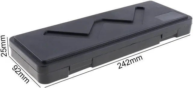 Material: PlasticColor: Black Suitable for Ruler Range: 0 - 150mmSize: 242 x 92x 25mm Product Weight : 118 G / 4.16 Ounces Product Dimensions (L*W*H) : 242*92*25 MM / 9.53*3.62*0.98 Inches Package Weight : 118 G / 4.16 Ounces Package Dimensions (L*W*H) : 242*92*25 MM / 9.53*3.62*0.98 Inches Retail Packaging: No, No Packing Features: - Food grade PP material is adopted, environment friendly, healthy and durable. - Small box design,Small objects can be placed. -There is only one empty box, and the contents of the picture are for reference only.