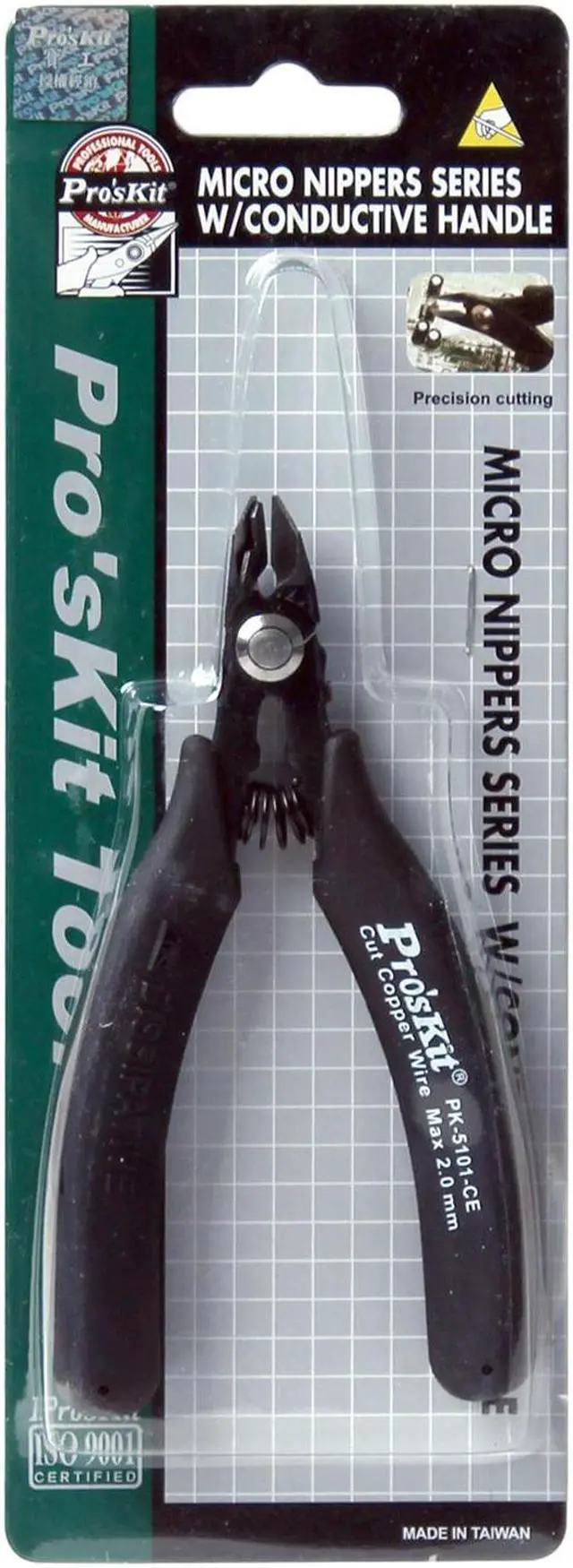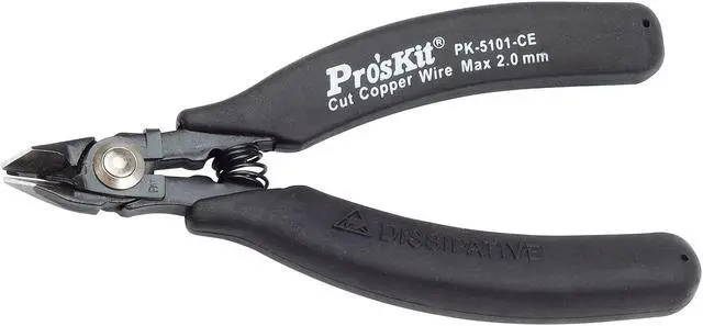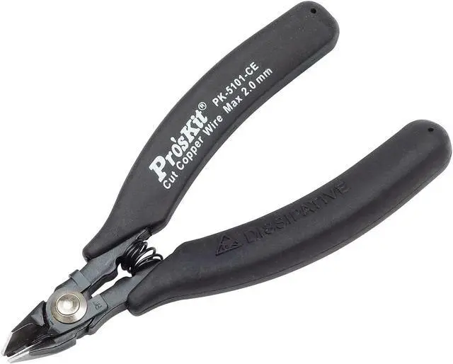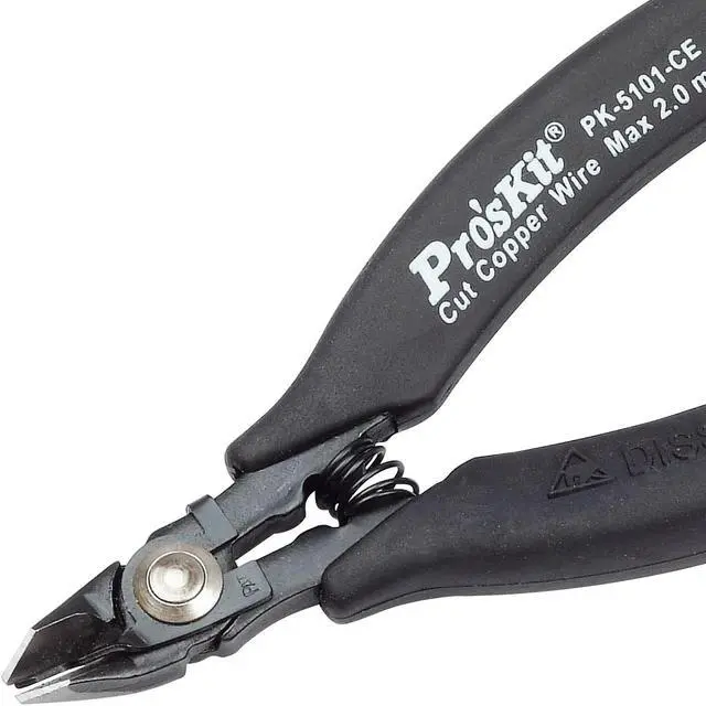 Pros'kit 1PK-5101-CE Heavy Duty Side Cutting Plier W/Safety Clip & Conductive Handle 125mm Anti-static Pliers Hand Tools Made from high carbon steel. Accurately machined, these high quality precision tools are designed for fine assembling and adjustment operations on electronic circuits. Provide easy work on high density PC board. Conductive handle.