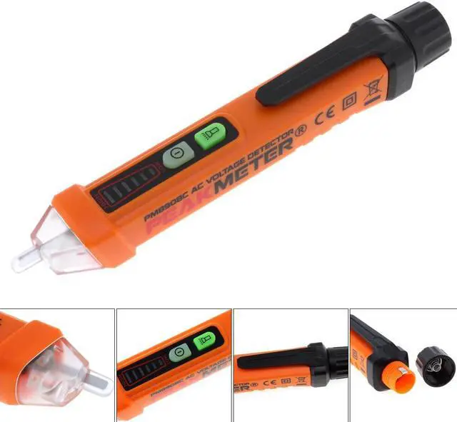 Features: - Practical and convenient way to test electrical lines. Accurately detects AC voltage ranging from 12V to 1000V, and distinguish them into 3 voltage levels. - Using the ABS and PVC material, the Voltage Tester can stand wear and tear, and its pocket clip allows easy handling. Auto power-off feature conserves energy while the LED torch allows operation even on dark corners. - Auto adjust sensitivity makes the test simple. Audible and visual alarm always guard your safety. The shining prompt of low voltage LED can warn you to replace the battery in time. - The Auto Power Off feature can extend battery usage time. - Now, you don't have to call a professional electrician nor make contact with the wire just to know whether electricity runs through it. - This device would determine whether there is some form of electricity running through the wire without you actually needing to touch it.