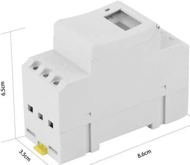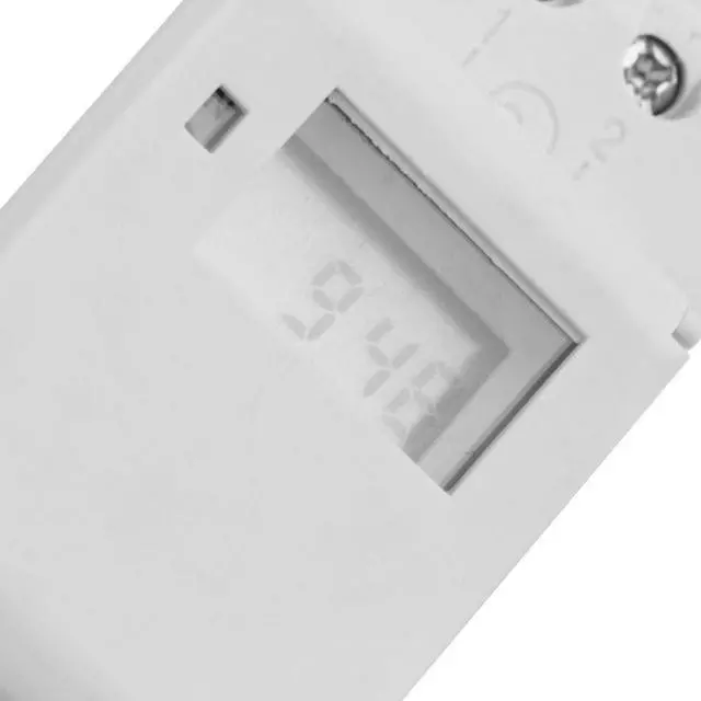 Model: THC 15 A Voltage rating:48V DC/AC, 110V AC15%, 220V AC15% Error correction: 1 sec/day(25degrees Celsius) ON/OFF operation: 8 ON/OFF Power consumption: 2W Service life: Mechanical 10^7, Electrical 10^7 Display: LCD Minimum interval: 1 minute Power reserve: 60 days Ambient temperature: -10-+40degrees Celsius Ambient humidity: 35-85%RH Size: 8.6 x 3.5 x 6.5 cm Net weight: 113 g Package weight: 168 g Color: White Panel mounted Advanced pre-setting one week before Digital electronic timer switch with daily and weekly programs Repeat programs with 8 on/off setting and manual override Lithium battery power reserve when electric supply cut off