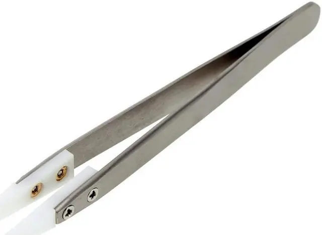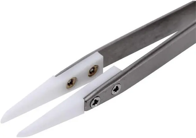 Specifications: Material: Ceramic + Stainless Steel Color: Silver + White Heat Resistant: up to 1600C Total Length: 12.4cm Item Weight: 24g / 0.8oz Package Size: 14 * 4.2 * 1.5cm / 6.5 * 1.5 * 0.6in Package Weight: 25g / 0.9oz The tweezers are made of ceramic and stainless steel material. The tweezers have good tolerance for bad condition. Features: Made of ceramic and stainless steel material, very durable. Corrosion and heat resistant, anti-acid, great tolerance for bad condition. Unique design, fine craft, it is smooth to use. Ideal tool to fix hot spots, replaceable tips.