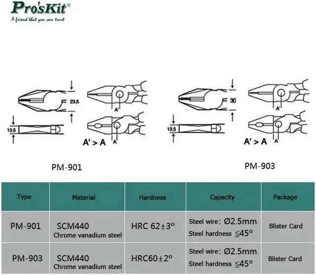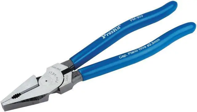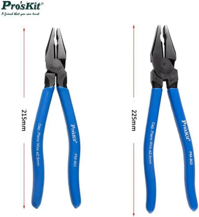 Pro'sKit PM-903-C Good Quality Durable Long Nose Beading Cable Wire Side Cutter Cutting Nippers Pliers Repair Tool High quality SCM440 forging made hardened finished Spring-loaded for self-opening action to reduce fatigue when long term operation Plastic coated handles for easy operation Particularly design for electronic and precision field Application: Steel wire: 2.5mm OAL: 225mm HRC:602