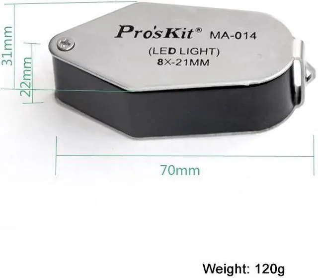 Magnifying Lens Size Light Battery Weight Packing 8X 21mm LED 3*LR1130 1.5V 55g Blister Card MA-014 8X LED Magnifier Lighting: LED Use High translucent lens, and stainless steel material Used for watching micro items, Jewelry