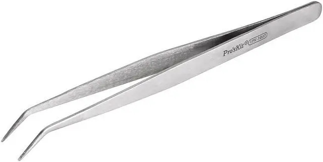 Pro'skit Handle Hole 1PK-106T Long Bend Stainless Steel Tweezers
