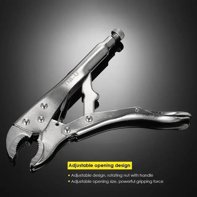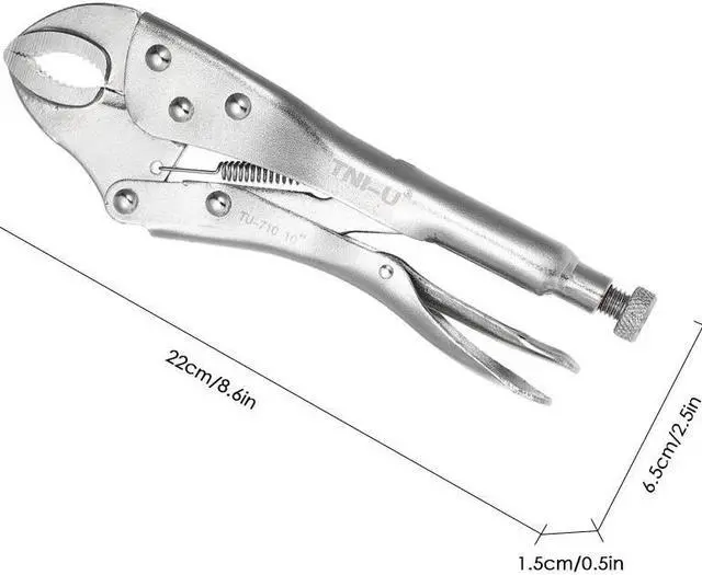 Specifications:Color: SilverMaterial: 45# steelThe Maximum Opening: Approx. 2cm / 0.7inItem Size: Approx. 22 * 6.5 * 1.5cm / 8.6 * 2.5 * 0.5inItem Weight: Approx. 446g / 15.7ozPackage Size: Approx. 29 * 9 * 2.3cm / 11.4 * 3.5 * 0.9inPackage Weight: Approx. 480g / 16.9oz Features:Perfect for tightening, clamping, twisting and turning the nuts.Constructed of high-grade heat-treated alloy steel for maximum toughness and durability.Guarded release trigger quickly, protects from accidental release.Hardened teeth are designed to grip from any angle.Hex key adjusting screw tightens to adjust pressure and draw materials together for a controlled release.