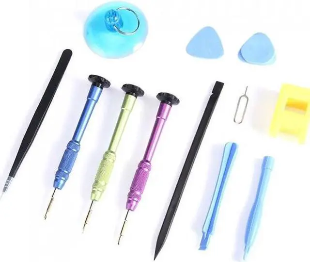 GeneralModel AS-102Quantity 1 setForm Color Light Blue + MulticolorMaterial Tool steel + plasticSpecificationScrew Head Type All-in-OneScrew Driver Y-type 0.6, cross 1.5, five-star 0.8.Dimensions & WeightDimensions 4.72 in x 0.67 in x 0.67 in (12 cm x 1.7 cm x 1.7 cm)Weight 3.88 oz (110 g) Product built-in: 3 screwdriver, 2 pry bar, two triangular pieces, a sucker, a take the needle, a double with a pry bar, a tweezers, a magnetizer.Material: Tool steel + plastic.Screwdriver specifications: Y-type 0.6, cross 1.5, five-star 0.8.