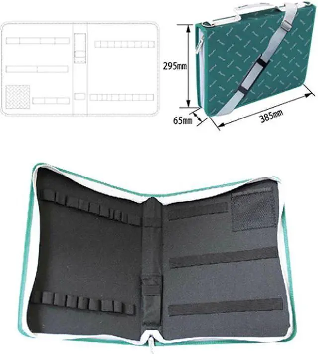 Pro'sKit ST-13S Multi-Functional Tool Bag Repair Tool Kit Bag Fashion Advanced Green Tool Bag -Large And Shoulder Strap * Wearable nylon material, strong and sturdy ,large with strap easy to carry. * Multifunction buckling and multi-size flexible band, match different requirement. * Zipper design, can take the tool easier. * Comfortable handle, easy to carry.