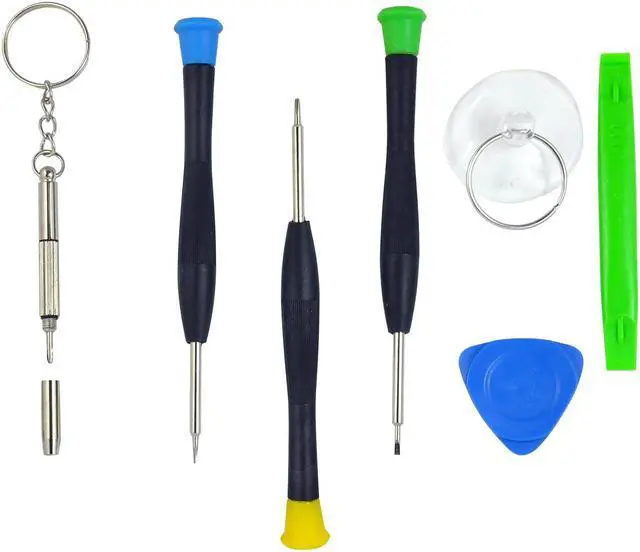7-in-1 Repair Opening Screwdriver Tool Set for iPhone 7 Samsung 7 in 1 repair opening tool set for iPhone Samsung cellphonesProfessional screwdriver & prying tool kitIncludes: 4 screwdrivers + 1 plastic pry bar + 1 triangle pry paddle + 1 suction cupA versatile tool set for opening your devices No retail package