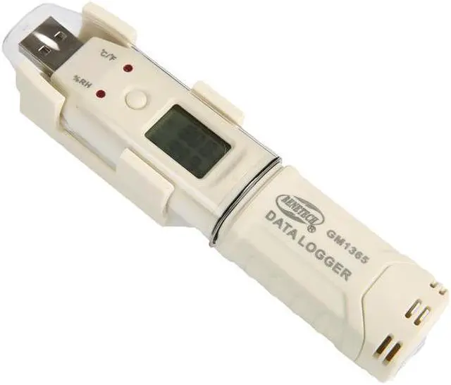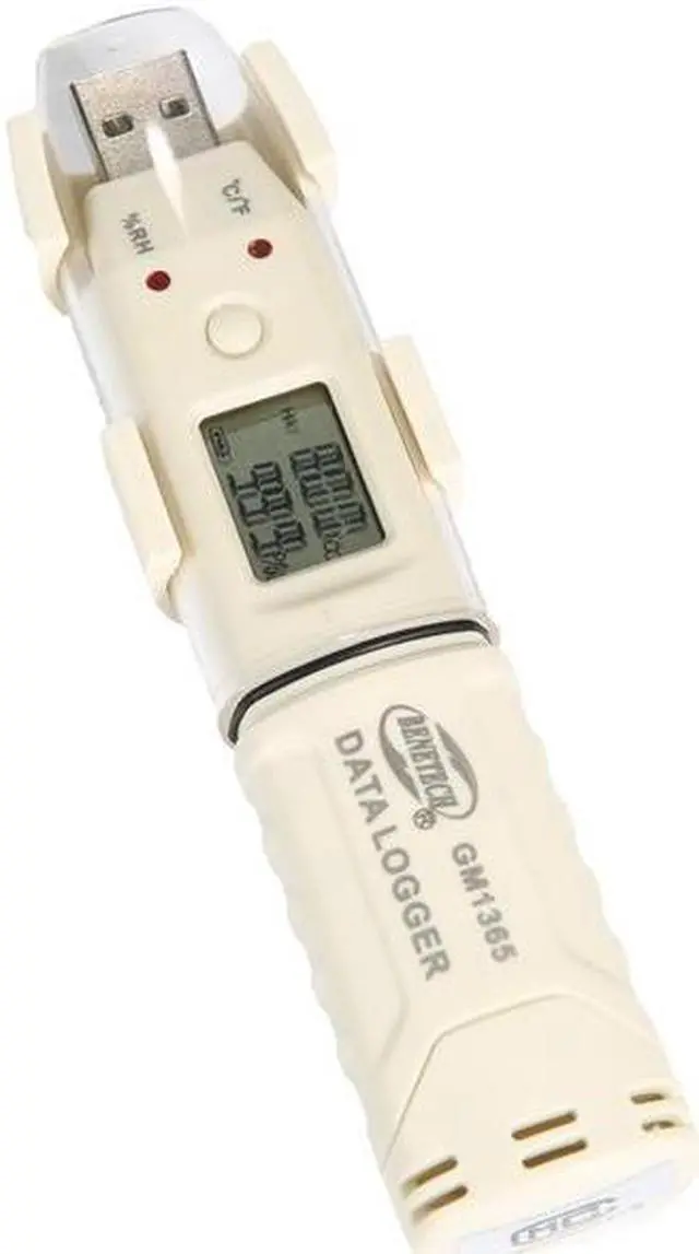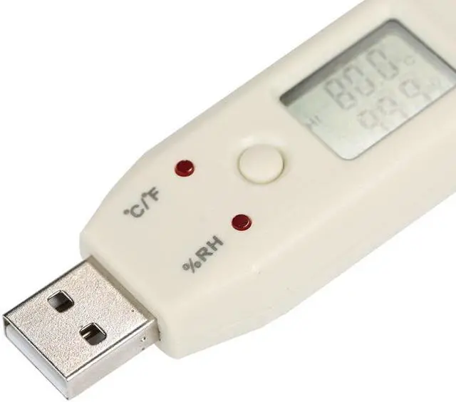 Features: This low power consumption Data-Logger combines the functions of signal-sampling, display, storage and analysis, widely be applied in the industries of medicine, food processing, agricultural research, laboratory, electronics, air-conditioning, weather service, archives management, etc. With high sensitivity detector to pick up temperature and humidity with quick response and high precision. It can review the readings of the current, max, min, up limit and low limit data. Automatically record and store the data of temperature and humidity. Directly connect the device with PC USB interface to transfer data with PC. To set up sampling period, storage interval and alarming. The cover can protect the device from moisture. Specifications: Measuring Range: Temperature: Humidity: 0~100%RH Recording Capacity: Power: 1/2AA 3.6V Lithium Battery (not included) Accuracy Error: (+/-)0.3C(Typical); (+/-)2%RH(Typical) Repeatability: (+/-)0.1 Item Size: 126 * 28 * 22mm / 4.96 * 1.1 * 0.87in Item Weight: 40g / 1.41oz Package Size: 20 * 14 * 6cm / 7.87 * 5.5 * 2.36in Package Weight: 105g / 3.71oz Package Content: 1 X Temperature and Humidity Meter 1 X Cover 1 X Bracket 1 X Software CD 2 X Screws 1 X User Manual (English) With Battery