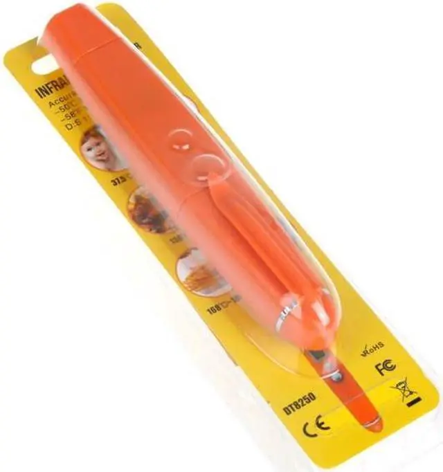 Features: Noncontact infrared (IR) thermometers use infrared technology to quickly and conveniently measure the surface temperature of objects without physically touching it. You simply aim, pull the trigger and read the temperature on the LCD display. Clip pen design, compact and can to be taken wherever you go. Celsius and Fahrenheit Selection.