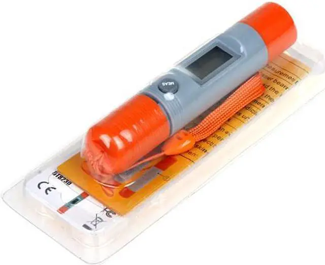 Features: Noncontact infrared (IR) thermometers use infrared technology to quickly and conveniently measure the surface temperature of objects without physically touching it. You simply aim, pull the trigger and read the temperature on the LCD display. Compact and designed to be taken wherever you go with its wrist strap. Celsius and Fahrenheit Selection (in the hole of the back).