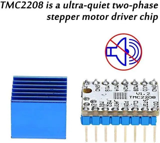 Specifications:Material: Mental + PlasticModel: Stepper Motor Driver TMC2208Microsteps: Up to 1/256MicroPlyer: 1/256Logic Voltage (VIO): 3-5VMotor Voltage (VM): 4.75-36VDrive Current: 1.4AMotor Phase Current: 1.2A RMS, 2.0A PeakPower: 5WItem Size: 20.3*14.9*11.5mm / 0.8*0.6*0.5inItem Weight: 45g/1.6ozPackage Weight: 50g/1.8oz Features:TMC2208 V1.2 Driver: TMC2208 is single-axis stepper motor drive chip,continuous drive current 1.4A,peak current 2A,voltage range 4.75V-36V,256 subdivision.Heat Sink: With heat sink effeciently work in heat dissipation,practicaly for prolong the service time of the driver.Easy to Use: Use the standard step / dir interface,can replace the original TMC2100 and reduce heat generation,especially for the 3D printing market.Major Features: UART configuration interface,CoolStep current dynamic adjustment technology,dcStep,stallGuard2 stall detection technology,can save 70% of the energy.Ultra-Quiet: TMC2208 is an ultra-quiet two-phase stepper motor driver chip,because the stealthChop2 ultra-quiet technology.