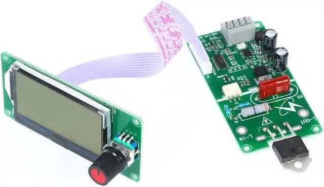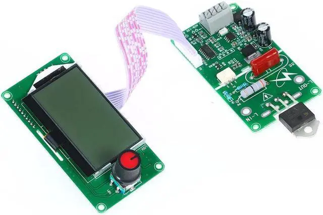 Specifications:Current: 40AMaterial: PCBLED Board Size: 86.7 * 45 * 26mm / 3.41 * 1.77 * 1.02inControl Board Size: 86.3 * 45 * 15mm / 3.40 * 1.77 * 0.59in Item Weight:80g / 2.82oz67g / 2.36ozPackage Weight:88g / 3.10oz74g / 2.61ozPackage Size: 16 * 9 * 3.5cm / 6.30 * 3.54 * 1.38in The spot welder control module is developed for DIY or simple battery welder. It is mainly used for single battery or battery group nickel plated sheet welding, such as 18650 lithium battery nickel plating 0.15 and 0.2mm steel sheets, transformer above 500W can be welded directly. It is intended to weld other battery materials and different thickness, such as polymer battery electrode without nickel plating, must be combined with sufficient power transformer to weld. This module includes main board and display board, optional 40A and 100A bidirectional silicon control rectifier, does not include welding transformers, welding pen and other matching tools.Features:Can be set to save the last operation, the module double pulse trigger, turn off any set of trigger time, you can change double pulse to single pulse trigger.The main board and the display operation panel are separated, and the outer casing can be flexibly assembledMulti-group data 12864 visual display, intuitive operation, convenient, single encoder parameter adjustment can make the operation simple and fast.With grid voltage compensation, the output of compensation can be automatically adjusted according to the change of power supply, and the electric voltage of about 1 second can be displayed when triggered, so that the effective heat of welding is consistent with the welding parameters, and the welding spot is uniform.With 0-9999 welding counting function, with 5 groups of sample storage parameters, can be stored even the electricity power is off, the number of welding could be seen just by a glance.The module can isolate the strong and weak electricity by optical coupling, and design a reliable circuit for zero-crossing detection and voltage detection to ensure the accurate phase shift of silicon control rectifier (SCR), which can be compatible with 40A-100A bidirectional silicon control rectifier (SCR).The power input and external trigger adopt convenient and quick welding free terminal, the external trigger can be diversified, such as normal switch, foot switch, external signal source input, etc., the software has anti-lock state, triggering to the end of welding, for one round. For example, the pedal switch has been trampled all the time, can only trigger one round.