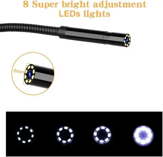Features: Wide application, can be used for automobile inspection, pipeline inspection, air conditioning inspection, etc. Equipped with a 4.3 inch 1080P high definition dispaly screen. Built-in 8pcs adjustable LEDs lights, it will help you improve the visibility in dark or low-light areas. IP67 waterproof function, you can use it underwater or in a wet environment. Built-in 2600mAh large capacity rechargeable lithium-battery, and you can charge it through connecting any USB device. You can insert into your TF card when taking photos or recording videos with a TF card card slot. Easy and convenient to use, just plug and play.
