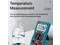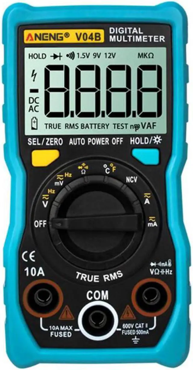 Continuity: Yes Diode measurement: YesTest for Continuity: Yes NCV (Non-contact voltage detection): YesDisplay: 4000counts Ranging: AutoMaterial: ABS+PVC Update Rate: 3/sLow Battery Indication: Yes True RMS: YesData Hold: Yes Backlight: YesFlashlight: Yes Auto Power Off: YesDriving mode: AAA x2 (Batteries do not contain)Product Size: 119.5X60X28.5mm 4.70inX2.35inX1.12inProduct List:Digital multimeter X1Test stick X2Instruction Manual X1Thermocouple X1Digital multimeter mV file appears to be non-zero, mainly in the following cases:1: If the ambient temperature and humidity in the air change too much, it will not return to zero;2: There is a strong electric field or magnetic field disturbance around.3: The multimeter itself is faulty.When the multimeter does not return to zero, it can be judged as follows: the multimeter is dialed to the mV file, the corresponding input hole is inserted into the red and black pen line, and the red and black pen line is shorted. At this time, the multimeter displays "0000" to judge the multimeter. The phenomenon of zero return is due to interference from environmental factors. The non-return to zero in this state does not affect the use of the multimeter. However, it is recommended to eliminate environmental interference factors so as not to affect the measurement accuracy and produce erroneous measurement results. Introduction1.Thisproductisabattery-powered,auto-ranging,true RMS digital multimeter with a 4000 counts LCD display.When the measured voltage exceeds 36Vdcor25Vac, the operator should fully avoid electric shock.2.Misuse of patterns or changes can lead to image distortion, so when input is within range, OL will be displayed on the screen.3.Low battery power can lead to incorrect readings. Please change the battery power when the battery power is low.rangeDC VOLTAGE(V): 4.000V- 40.00V- 400.0V- 600V Accuracy +-(0.5%+3)AC VOLTAGE(V): 4.000V- 40.00V- 400.0V- 600V Accuracy +-(1%+3)Resistance: 4.000K-40.00K-400.0K-4.000M-40.00M Accuracy +-(1.5%+3)DC current range: 40.00mA-400.0mA-4.000A-10.00A Accuracy +-(1%+3)AC current range: 40.00mA-400.0mA-4.000A-10.00A Accuracy +-(2%+3)Capacitance: 4.000nF-40.00nF-400.0nF-4.000uF-40.00uF-400.0uF-4.000mF Accuracy +-(4%+4)Frequency: 4.000Hz-40.00Hz-400.0Hz- 4.000KHz-40.00KHz-400.0KHz-4.000MHz-10.00MHz Accuracy +-(1%+2) Temperature measurement: (Centigrade -30/1000) (Fahrenheit -22/1832) Accuracy +-(3%+5)Working environment temperature: (Centigrade 0-40) (Fahrenheit 32-104)Humidity of working environment: Less than 70%