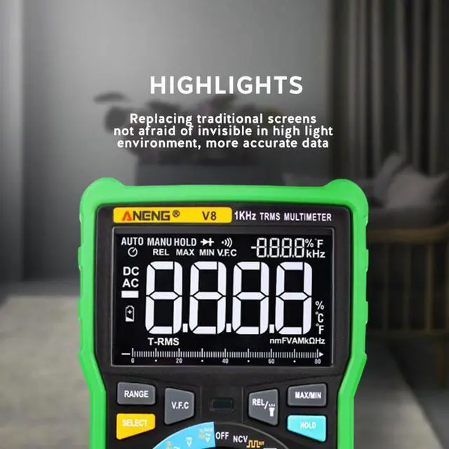 ANENG V8 Digital Multimeter Profesional 8000 Counts True RMS Transistor Tester Analog Transistor Multimetro Multimetr Multiteste - Green