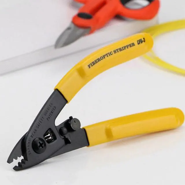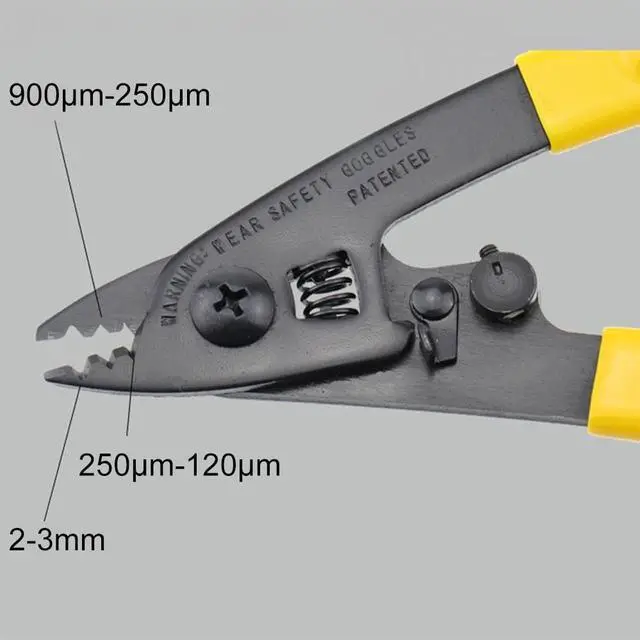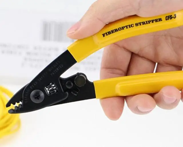Product description:wiring tool Miller clamp CFS-3 US dual-port Fibre Strippers / fiber stripping pliersProduct Name: CFS-3 dual-port Fibre Strippers (Miller clamp)Length: 165mmProduct Weight: 113g For stripping 125m fiber 250m coatingTop opening 1.98mm can be used to strip the outer sheath pigtailV-port and 140m aperture edge on the clamp can be used to strip 125m fiber 250m claddingProduction field preset, adjust NeedlessIt will not damage the fiberAll cut surfaces have precise mechanical tolerances to ensure a clean, smooth operationErgonomically designed handle, comfortable gripWhen not in use, the blade locks in the closed state