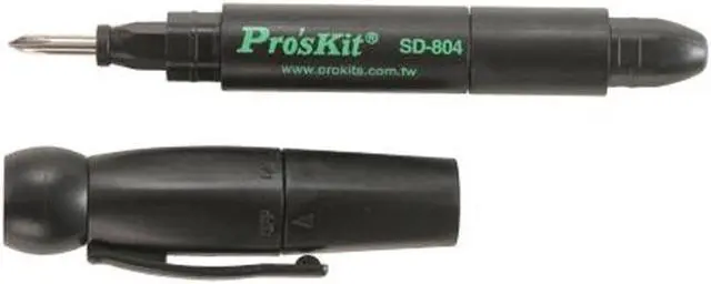 Pro'skit SD-804 Multifunctional Screwdriver Double-Head Bits Screwdriver Pen With lamp Slotted And Phillips Bits DIY Repair Tools Kit Features:Chrome vanadium steel double-head bits with overall precision machining and through quenching treatment makes the bits harder and better torsion.Compact, lightweight and portable design with anti-slip pen shape, suitable for a variety of operational uses.Hook design, easy to carry, more convenient to repair with plug-pull design.Different sizes of screwdriver bits are available to use in wider scope of application.Small and practical, suitable for daily maintenance, home appliances, glasses, watches and electronics, general electrical or household repairs.