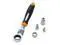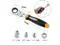 Specifications:Size: 1/4", 3/8", 1/2" Material: Chrome vanadium steel Features:Comfortable and labor-saving, suitable for long time work.Wrench can rotate vertically 180 degrees, easily adapt to complicated places. Applicable for manufacturing, auto repair, construction, home maintenance and morel.Sleeve adapter has automatic off button, convenient to change different specifications quickly.