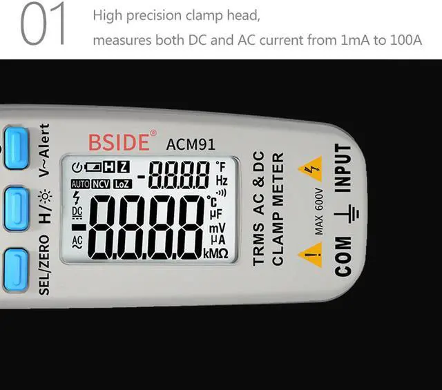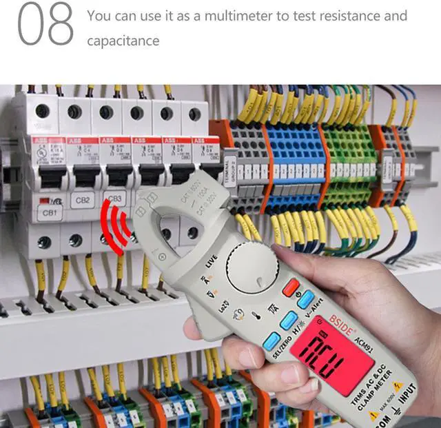 Features: Measure both DC current and AC current (minimum 1mA by jaws) Measure microamps A (minimum 0.1A by terminals)Measure AC and DC voltageMeasure frequencyLow impedance voltage measurementMeasure resistance, continuity and capacitanceMeasure temperatureLive check functionV-alert measurementClamp on frequency functionAuto rangeData holdAuto power offBack lightConform to the IEC-61010-1, IEC-61010-2-030, IEC-61010-2-032, IEC-61010-2-033 standardsOver-voltage protection class CAT III 300V, CAT II 600V, pollution degree II