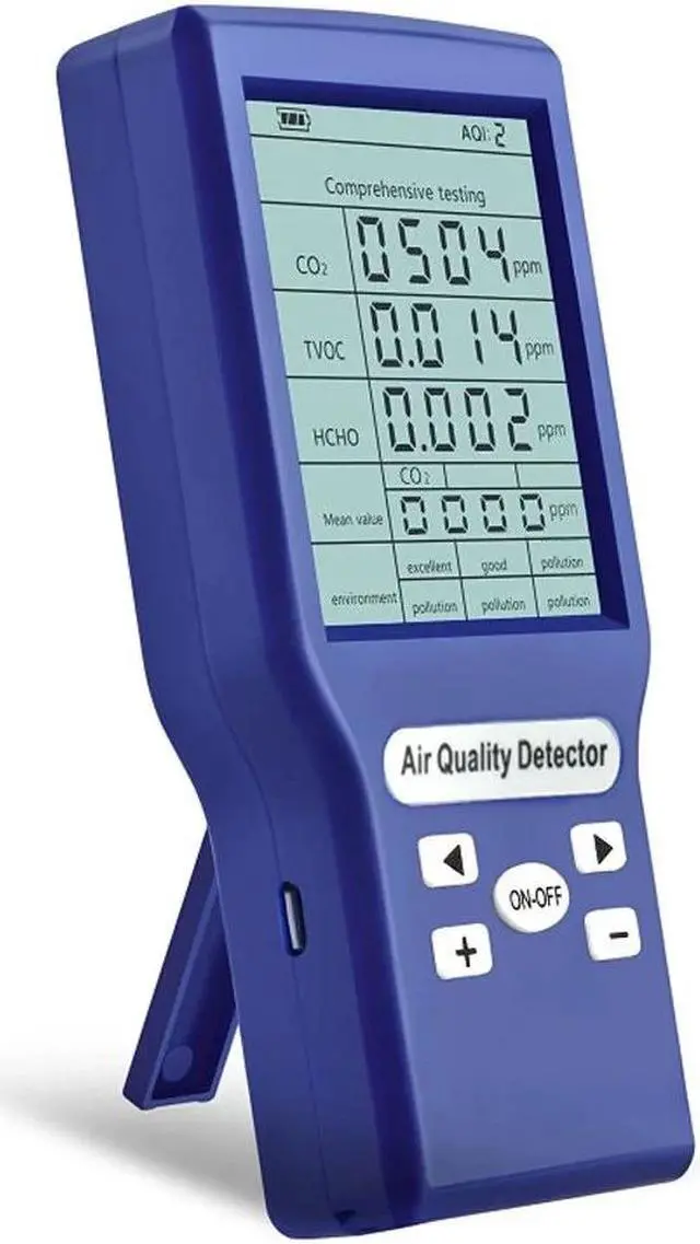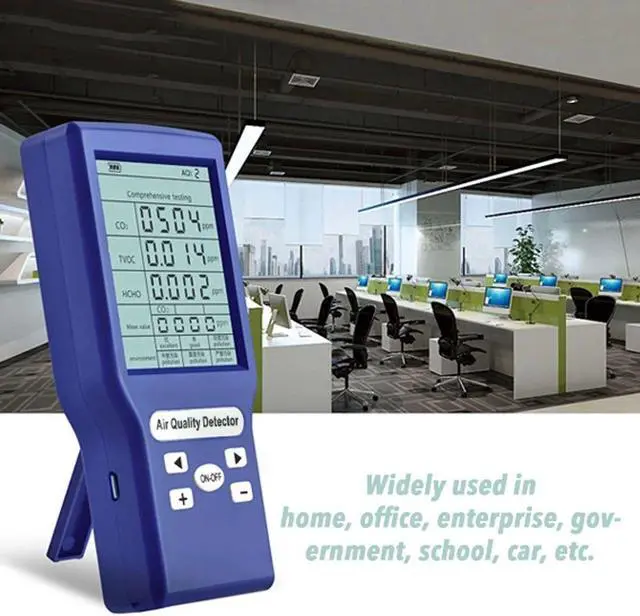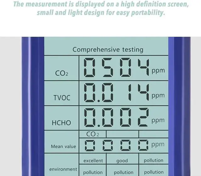 Features: Powered by rechargable lithium battery, the air quality monitor makes it easy to take measurements from one room to another in order to get an overview of the air quality in a home, workplace, school, a daycare centre or any other location. The air quality monitor is also an essential tool to use when performing property inspections or when using any household tools to see if there is any abnormal amount of toxin release. Intelligent detection of various types of gas. Most household gas can be detected, no need to worry about the applicability. The measurement is displayed on a high definition screen, small and light design for easy carrying. Natural air flow detection technology is adopted to determine air quality problems more accurately. Built-in polymer battery, energy saving and environmental protection, long standby time. Widely be used in home, office, enterprise, government, school and car, etc. Detect and monitor air problems at any time to ensure the health of family members or employees.
