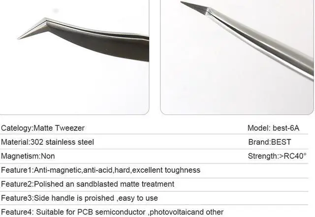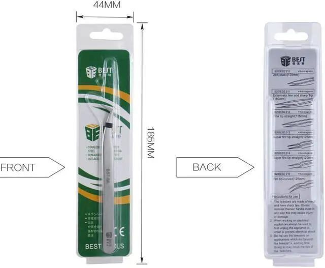 Description: Made of stainless steel, durable to use. Precision tip, high hardness. Anti-static, Non-magnetic, Anti-acid. Good for industry, office, home use. Please keep out of the reach of children!