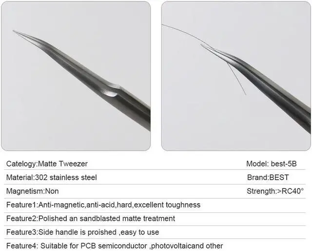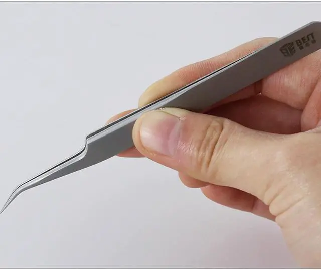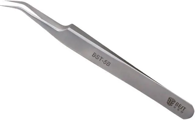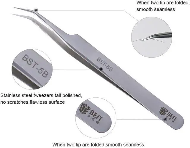 BST-5B Portable Matt Precision Curved Thin Anti-Magnetic Tweezer Heat Resistant PCB Eyelash Extensions Repair Tool