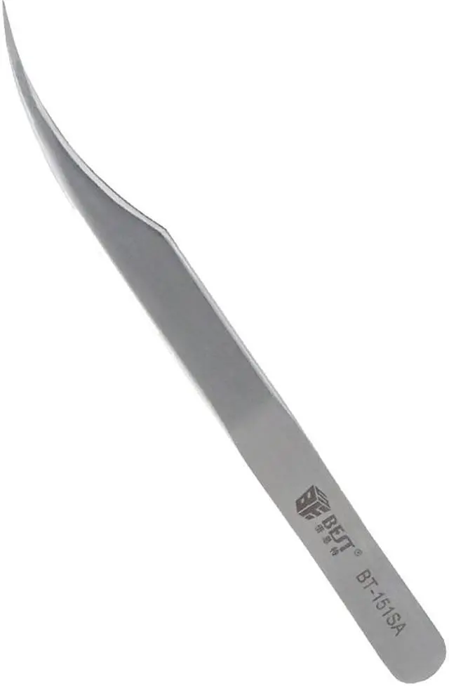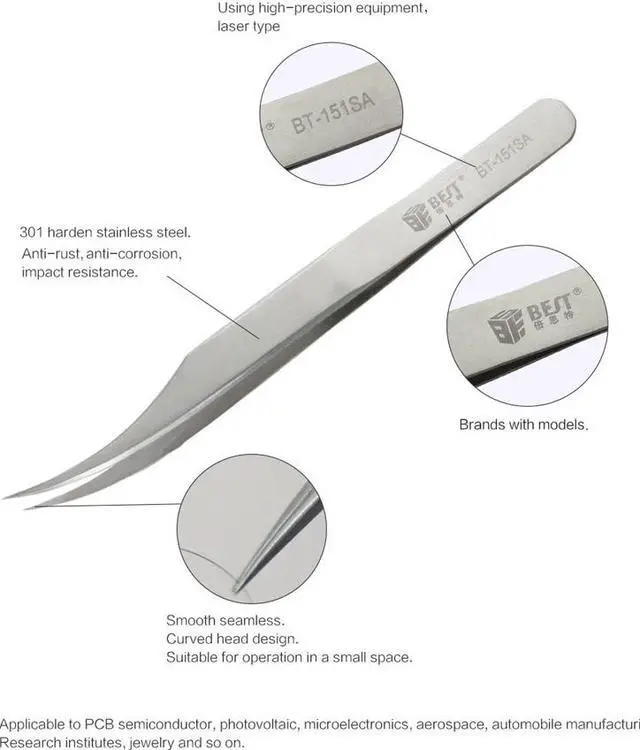 weight: 28.5 g This eyelash extension tweezers is made of quality stainless steel, full body is processed in high temperature. The surface has been polished sandblasted matte treatment, no reflected light, magnetic, anti-acid, hard, impact resistance, excellent toughness. Its angled tip make it perfect for picking up eyelash and handling small components and screws with care.