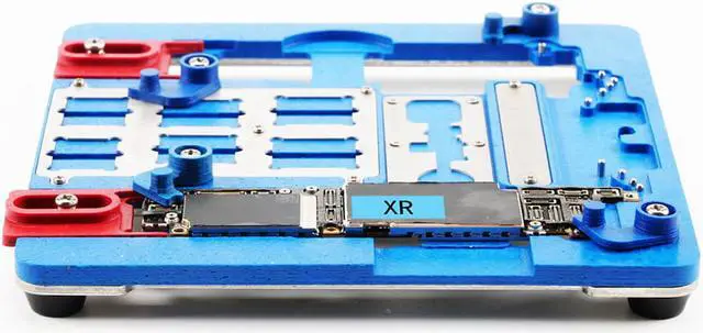 A21+ Repair Board PCB Holder For iPhone XR 8 8+7 6 6s 6sp 5s 5C For A8 A9 A10 Logic Board Chip Fixture Feature: Professional PCB Holder The base made of stainless steel and high temperature resistent & anti-static composite slab Groove on the black layer, designed for iPhone 5C 5S 6G 6P 6S 6SP SE 7 7P 8 8P XR A7 A8 A9 A10 You can easily clean the chips glue and solder with this board Durable and fine workmanship has no burrs on surface This product is professional skills needed, good repairing tools Heavy weight with the sponge on bottom, will not move easily