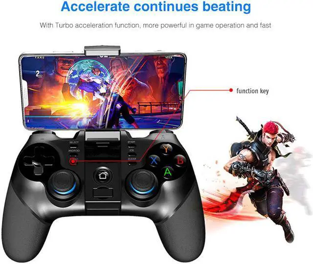 PG-9156 Gamepad Pubg Controller Mobile Joystick For Phone Android iPhone PC Smart TV Box Bluetooth Trigger Console Game Pad pabg Control Highlights Product support direct play direct play Support android 6.0 and above, iOS 11.0 and above system Bluetooth 4.0 and 2.4GH z wireless connection The product is suitable for Android / iOS mobile phones and tablets, Win 7 / 8 / 10 PC, smart TV Includes turbo serial function One-piece telescopic support for pull rod, tensile less than 85mm Supports 4 - 6 inch phones
