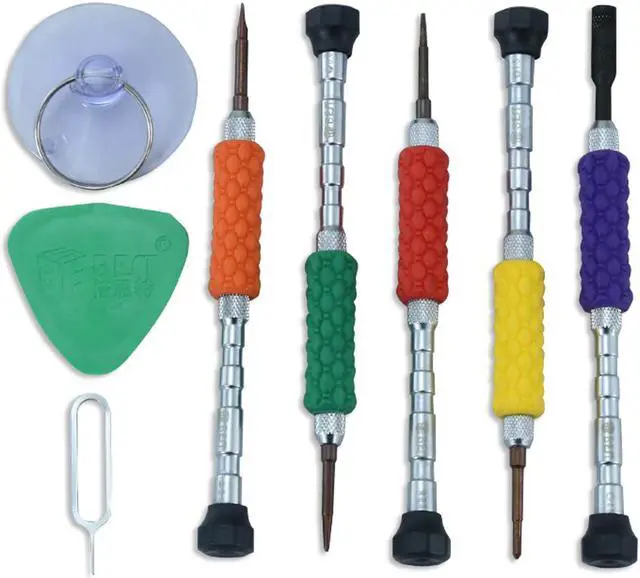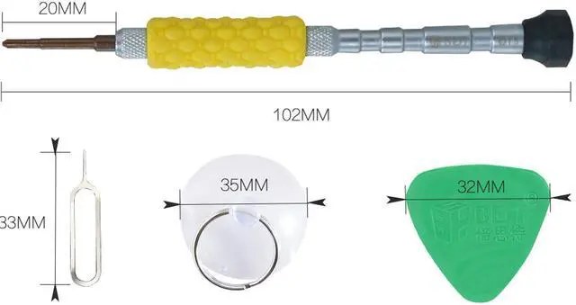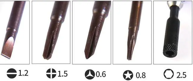 Bits: M 2.5, Y 0.6, PH000, Slotted 2.0, Pentalobe 0.8 Socket 2.5 Screwdriver use for removing camera of iphone 6/6s. Cross 1.5 mm screwdriver use for removing Mobile phone for iPhone series. Y shape 0.6 mm screwdriver use for removing mother board for iPhone 7. Straight 2.0 mm screwdriver use for removing mother board for iPhone 6. Pentagon 0.8 mm screwdriver use for removing mother board for iPhone series. This screwdriver set is suitable for iPhone series.