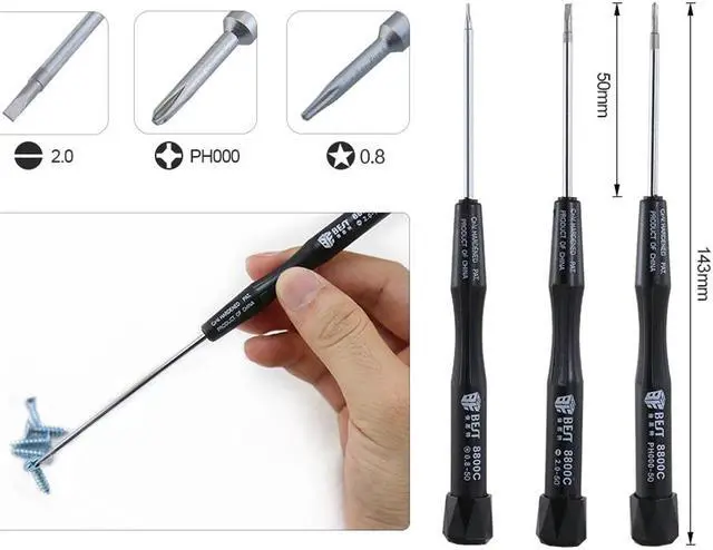 Surface treatment: Polished Type of head PH000(+ 1.5 )/ Flat 2.0 /Pentalobe 0.8 /