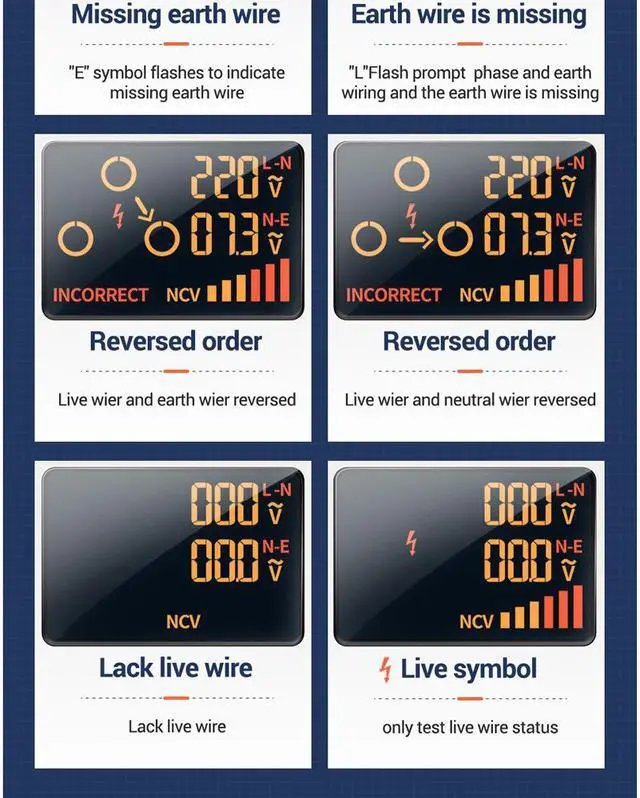 Compact & Portable: Advanced socket tester for rapidly detecting whether the wire connection of a socket is correct or not. Compact size & light weight, convenient to use. -