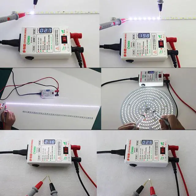 Features: Can be used to test LED TV (any size) backlight. Automatic recognition of LED polarity, adaptive test of lamp bead, strip & backlight and it won't not burn lamp bead. High brightness, no need to separate screen to judge whether a backlight strip works well. Automatic adjustment of output voltage and current. Can test the withstand voltage of capacitance, voltage value of voltage-regulator diode & voltage of lamp beads and lamp panel. No burned out, no electric shock.