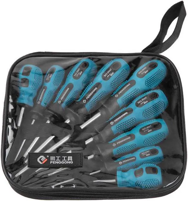 709g Feature: The plastic handle are designed according to ergonomic principles. Labor saving and nnot easy to get fatigue. Handle with imported satin chrome vanadium steel, cutter surface Matt chrome + black nickel platingHead magnetic treatment, more convenient to adsorb screw head. Several sizes for selection, this set is easy to carry.