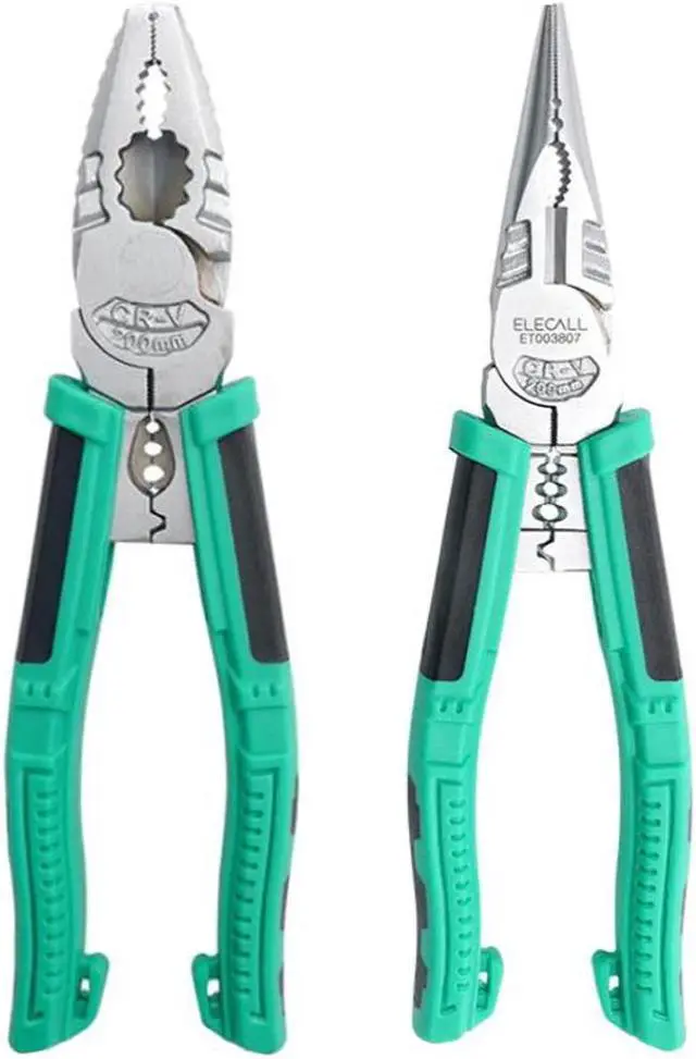 ELECALL Multifunction Electrician Cable Wire Cutter Plier 8" Long Nose Plier Cutting Nippers Stripping Crimpping Hand Tools - 2PCS