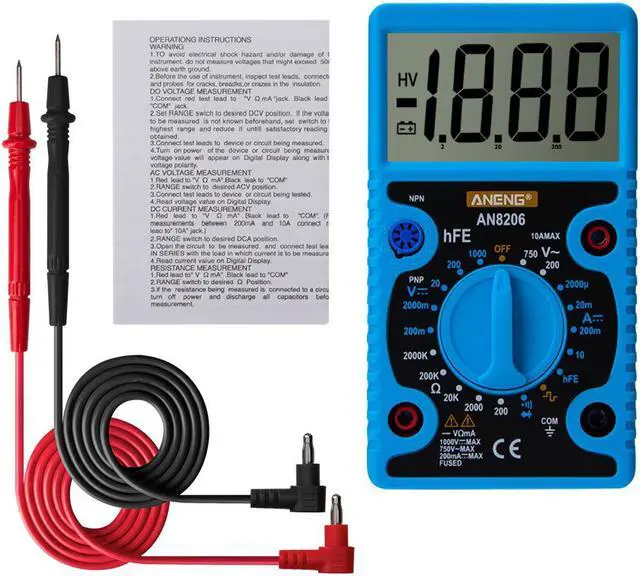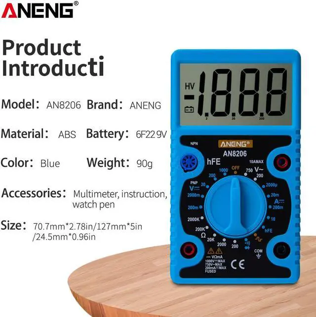 ANENG AN8206 Large Screen Digital Multimeter with Square Wave Output Voltage Current Continuity Measurement hEF Measurement -
