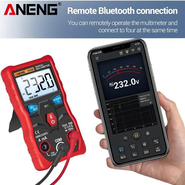 ANENG V05B Digital Bluetooth Multimeter 6000 Counts Professional Analog Multimeter AC/DC Currents Voltage Mini Testers True RMS Multimetro & Packing Box - Red