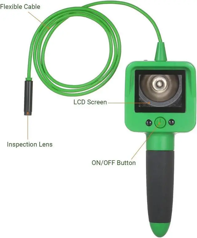 • Features:Function Device: it is very helpful in inspection of hard to reach or hard to see area or equipment, really an economical solution for automotive/diesel repairing and maintenance, science education, outdoor exploration, etc.Waterproof Cable and Lens: the camera lens and cable tube was waterproof designed for underwater inspection (do not immerse the camera handle or display screen in water).Flexible Cable: 42 inches long flexible cable can be shaped into the desired shape and angle that may help you explore areas you are impossible to see.3 Attachments: including a hook, a mirror, and a magnet to help better view and retrieve objects from inspection locations.Compact Structure: the handheld endoscope is portable and durable, its overall reinforced structures ensures stability under heavy duty.