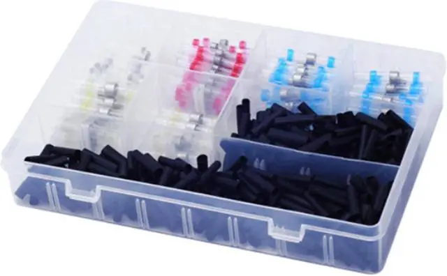 Features: An easy one step connection of wires, soldered, insulated and sealed. Quick, efficient, no crimping required. Solder and seal and with advanced waterproof function. Transparent heat shrink sleeve allows for accurate visual inspection. Greater pull strength. Used in electronics, railway, marine, automobile, motorcycle, aerospace and other outdoor applications. Storage in a plastic case for easy access.